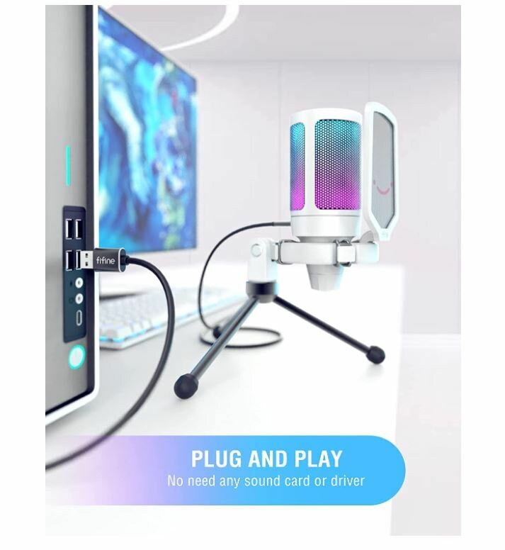 Конденсаторный USB-микрофон Fifine AmpliGame A6V с RGB-подсветкой (White)