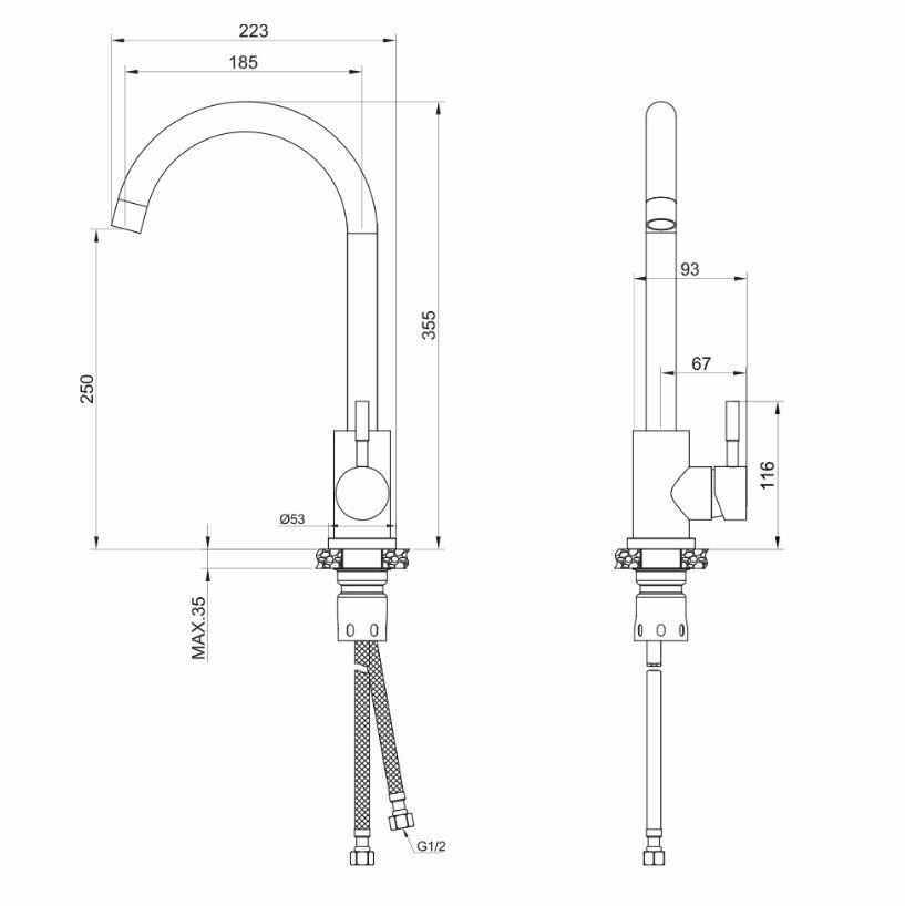 Смеситель для кухни OLIVE'S Balear нержавеющая сталь 13435-1BLB