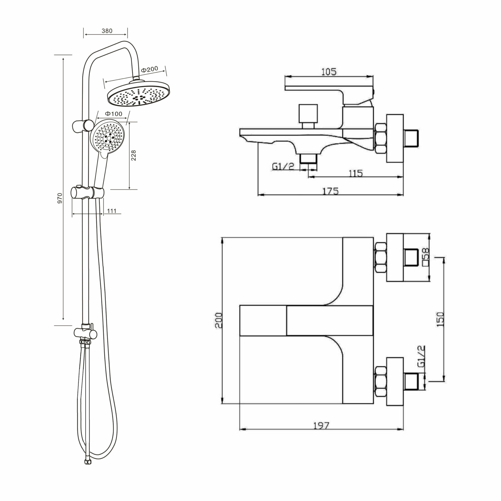 | Комплектация | Верхний душ;Держатель для лейки;Душевая лейка;Душевая штанга;Смеситель;Шланг для душа;Шланговое подключение |