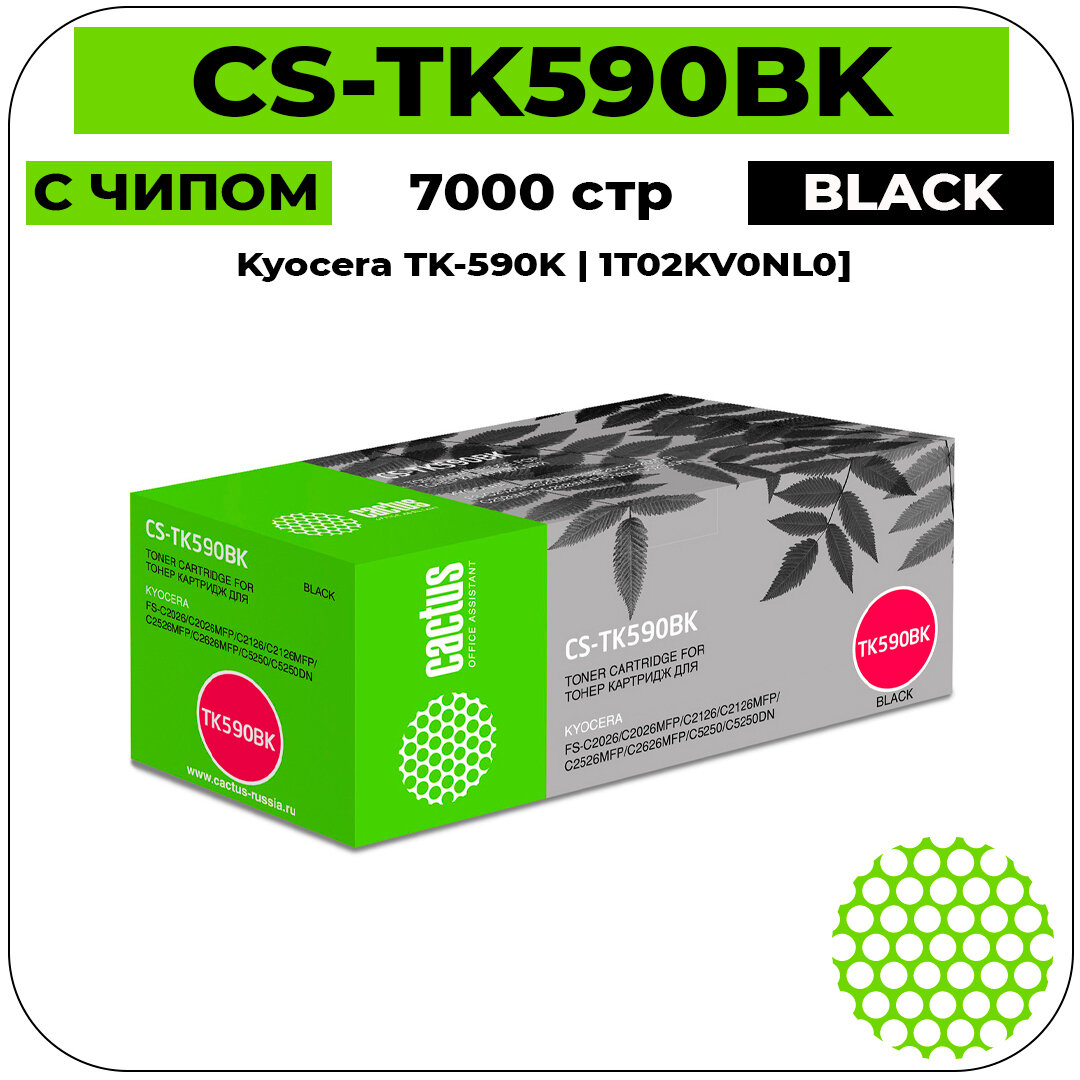 Тонер-картридж CACTUS (CS-TK590BK) для KYOCERA FS-C2026MFP/2126MFP/2626MFP, черный, ресурс 7000 стр.