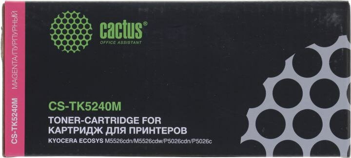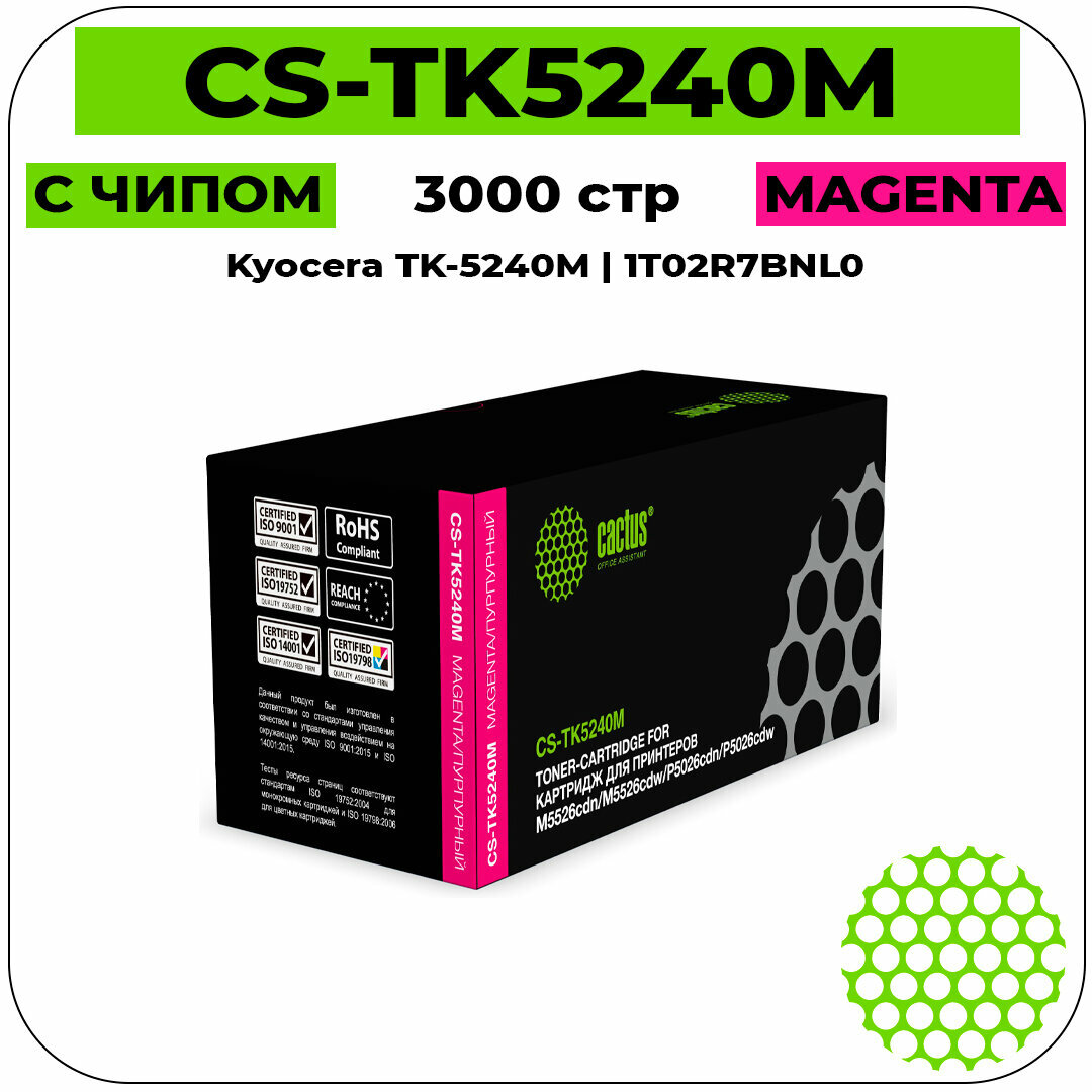 Картридж Cactus CS-TK5240M TK-5240M пурпурный, для KYOCERA Ecosys M5526cdn/M5526cdw/P5026cdn/P5026cdw, ресурс до 3000 страниц