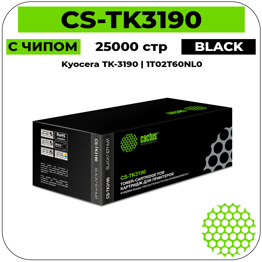 Тонер-картридж CACTUS (CS-TK3190) для KYOCERA Ecosys P3055dn/P3060dn, ресурс 25000 стр. (арт. 362968)