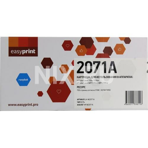 Купить Картридж EasyPrint LH-W2071A, голубой, 700 страниц, совместимый для Color Laser 150a/150nw, MFP 178nw/179fnw