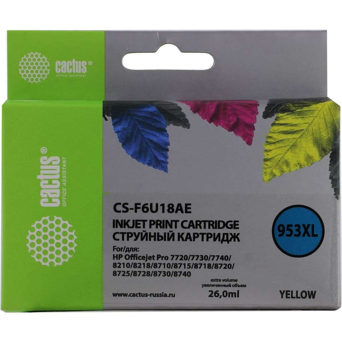 Купить Струйный картридж Cactus CS-F6U18AE 953XL желтый (26мл) для HP OJ Pro 7740/8210/8218/8710/8715