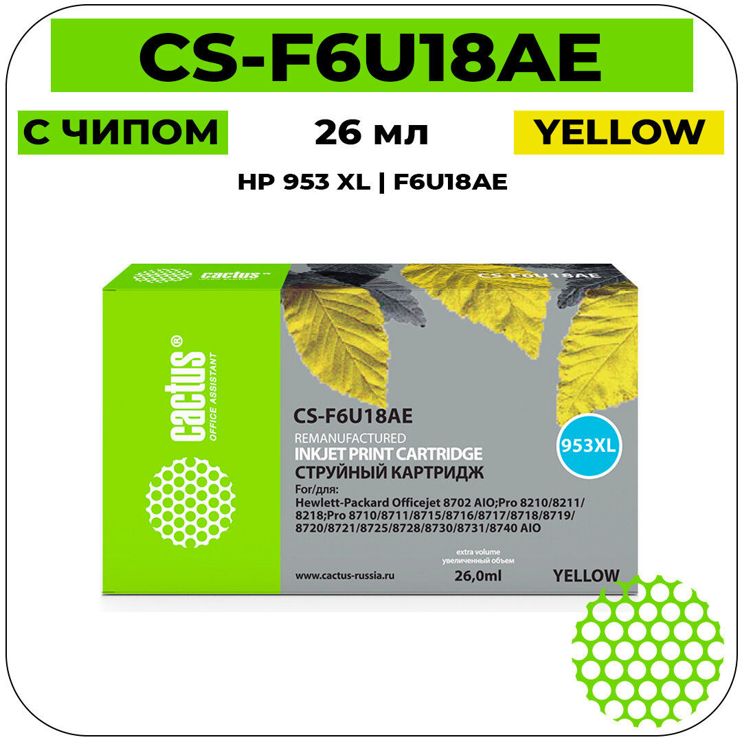 Картридж Cactus CS-F6U18AE, 953XL(есть ограничения по прошивке), желтый / CS-F6U18AE