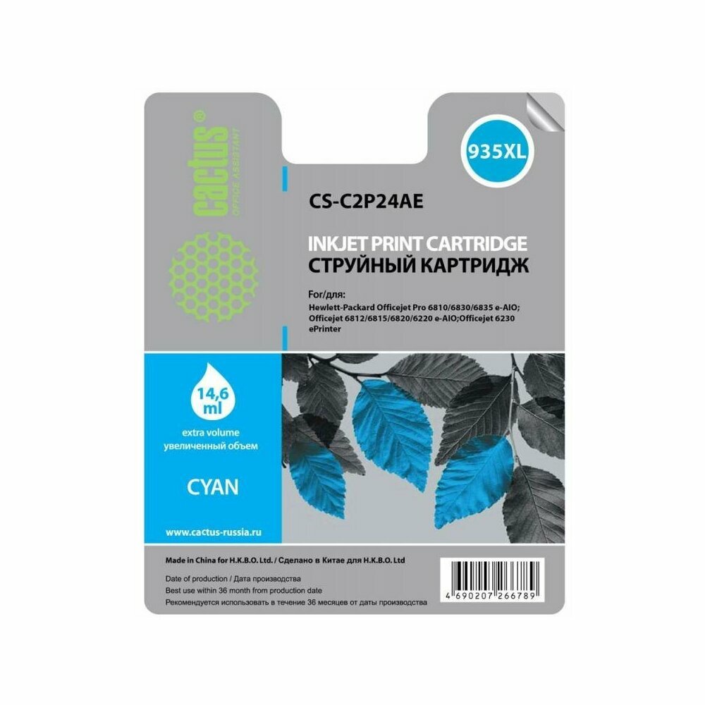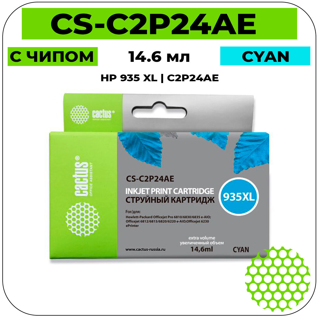 Картридж струйный Cactus Cs-c2p24ae 935xl голубой (14.6мл) для HP DJ Pro 6230/6830 Cs-c2p24ae