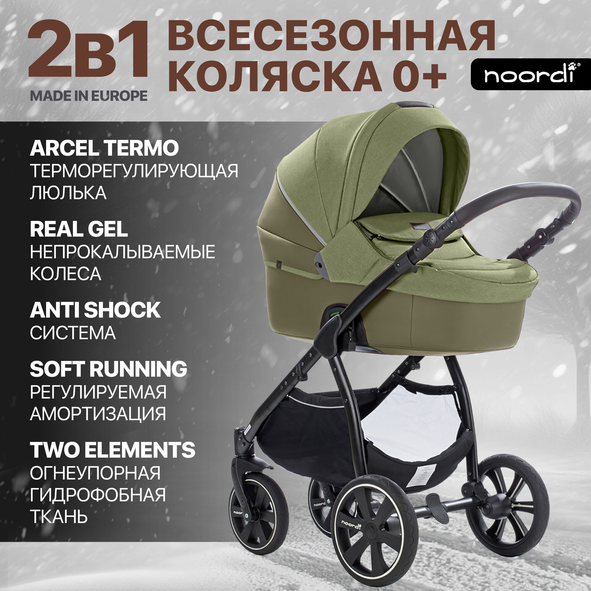 Коляска для новорожденных Noordi Fjordi Melange Leather 2в1 Sport 662842 интересное: