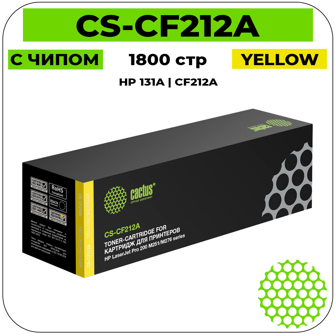 Картридж лазерный CACTUS (CS-CF212A) для HP LaserJet Pro 200 M276n/M276nw, желтый, ресурс 1800 стр. - 1 шт.
