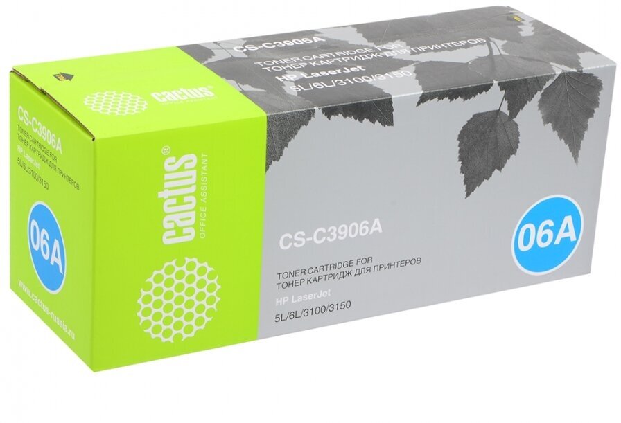 Картридж лазерный Cactus Cs-c3906a черный (2500стр.) для HP LJ 5L/6L/3100/3150 Cs-c3906a