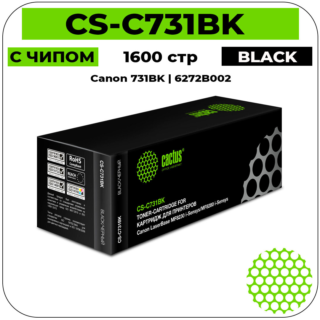 Cactus Cartridge 731BK Картридж CS-C731BK черный для Canon LaserBase MF8230 i-Sensys MF8280 i-Sensys 1600стр.