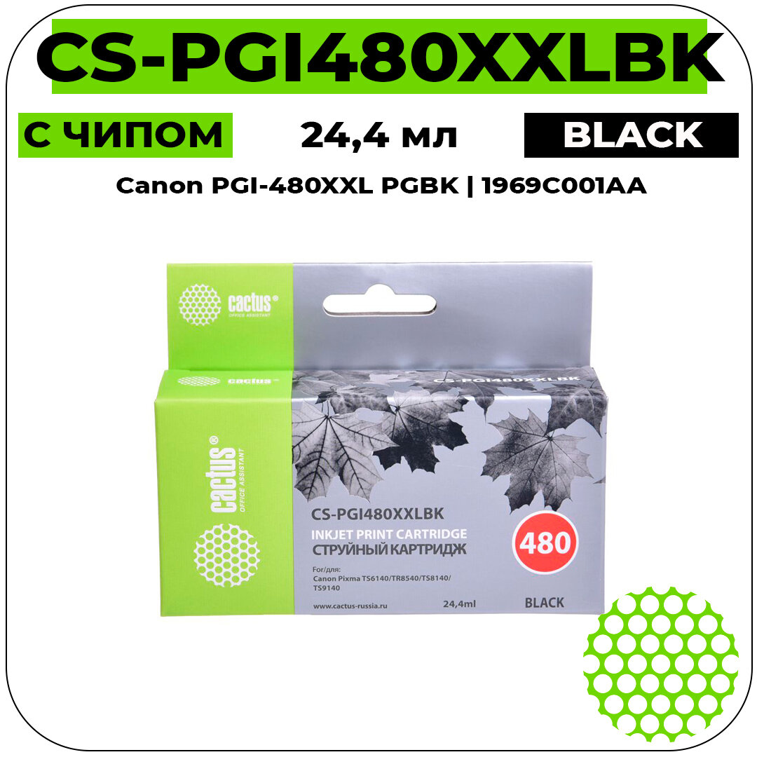 Картридж струйный CACTUS (CS-PGI480XXLBK) для Canon Pixma TR7540/TR8540/TS6140/TS8140, 1 шт