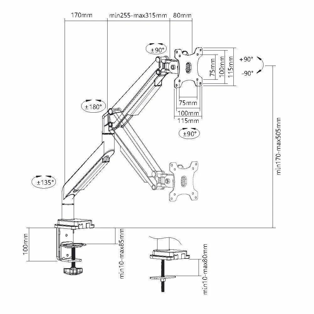 Настольный кронштейн для двух мониторов NB North Bayou G35, 22-32" до 12 кг, матовый черный