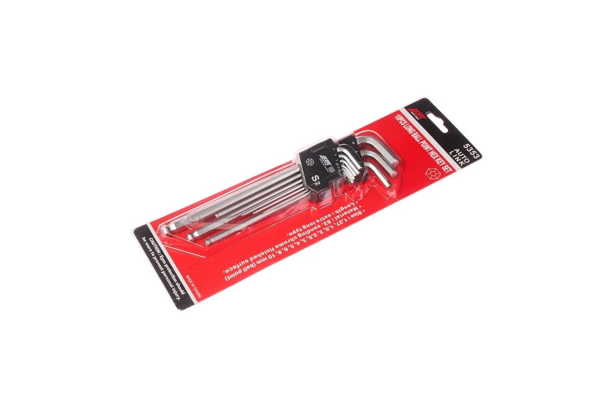 Набор Г-образных шестигранных экстрадлинных ключей с шаром 1.27-10мм 10шт JTC 5353