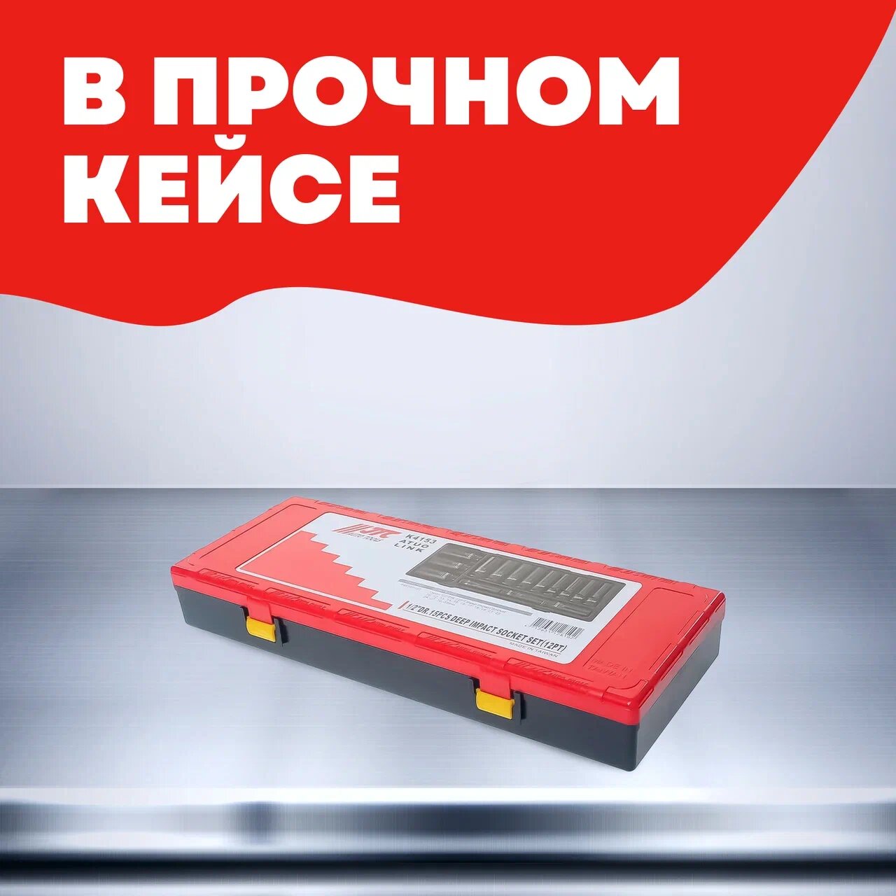 JTC JTCK4153 Набор головок торцевых глубоких ударных 12-гранных 1/2" 10-32мм (в кейсе) 15шт