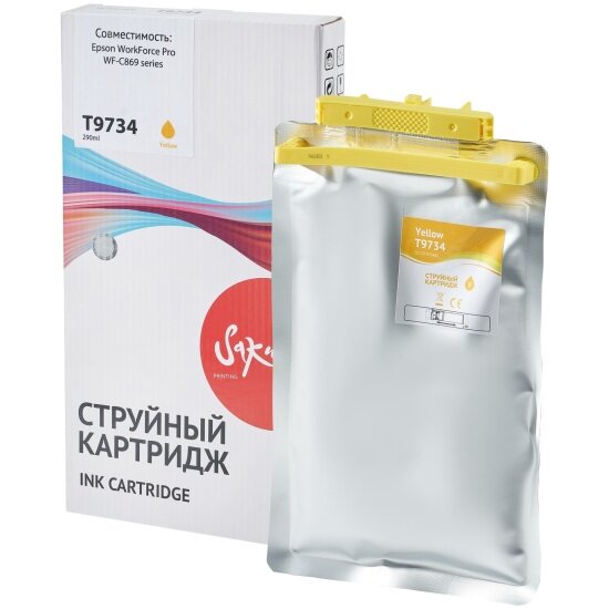 СохранитьКонтейнер с чернилами Sakura Printing Sakura C13T973400 (T9734 Y) для Epson WorkForce Pro WF-C869RDTWF, желтый , 22000 к. интересное: