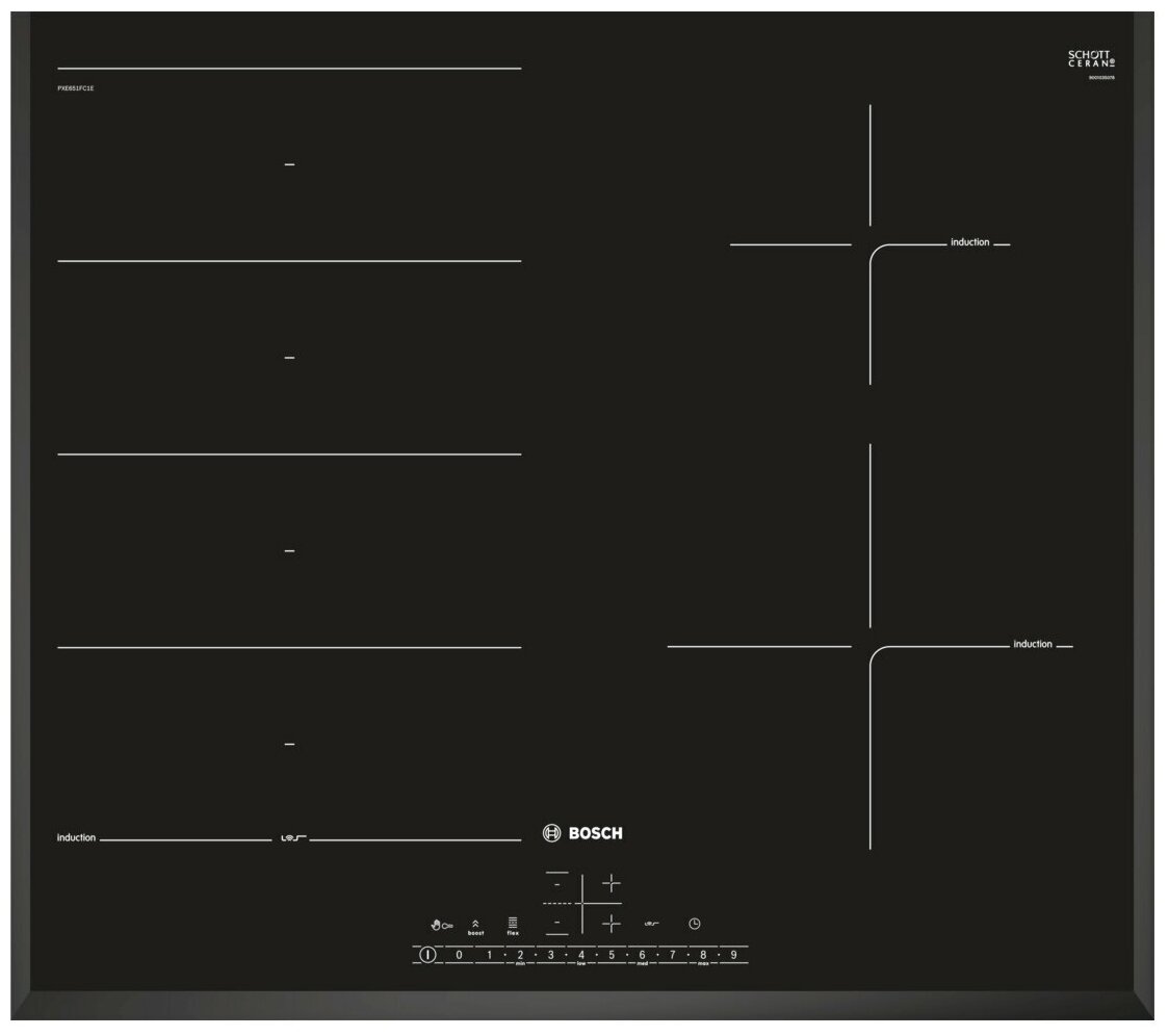 Индукционная варочная панель Bosch PXE651FC1E на 4 конфорки, шириной 59.2 см, черный интересное: