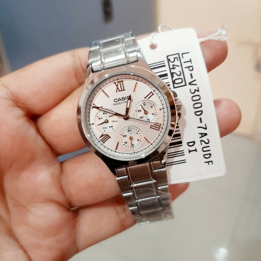 Женские наручные часы Casio LTP-V300D-1A на металлическом браслете с дополнительным циферблатами