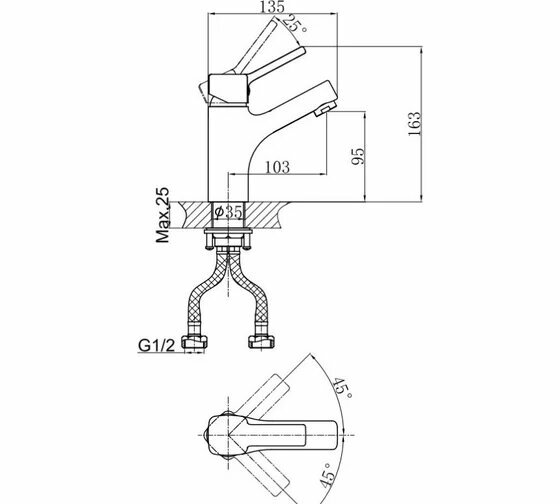 | Длина излива | 103 мм |