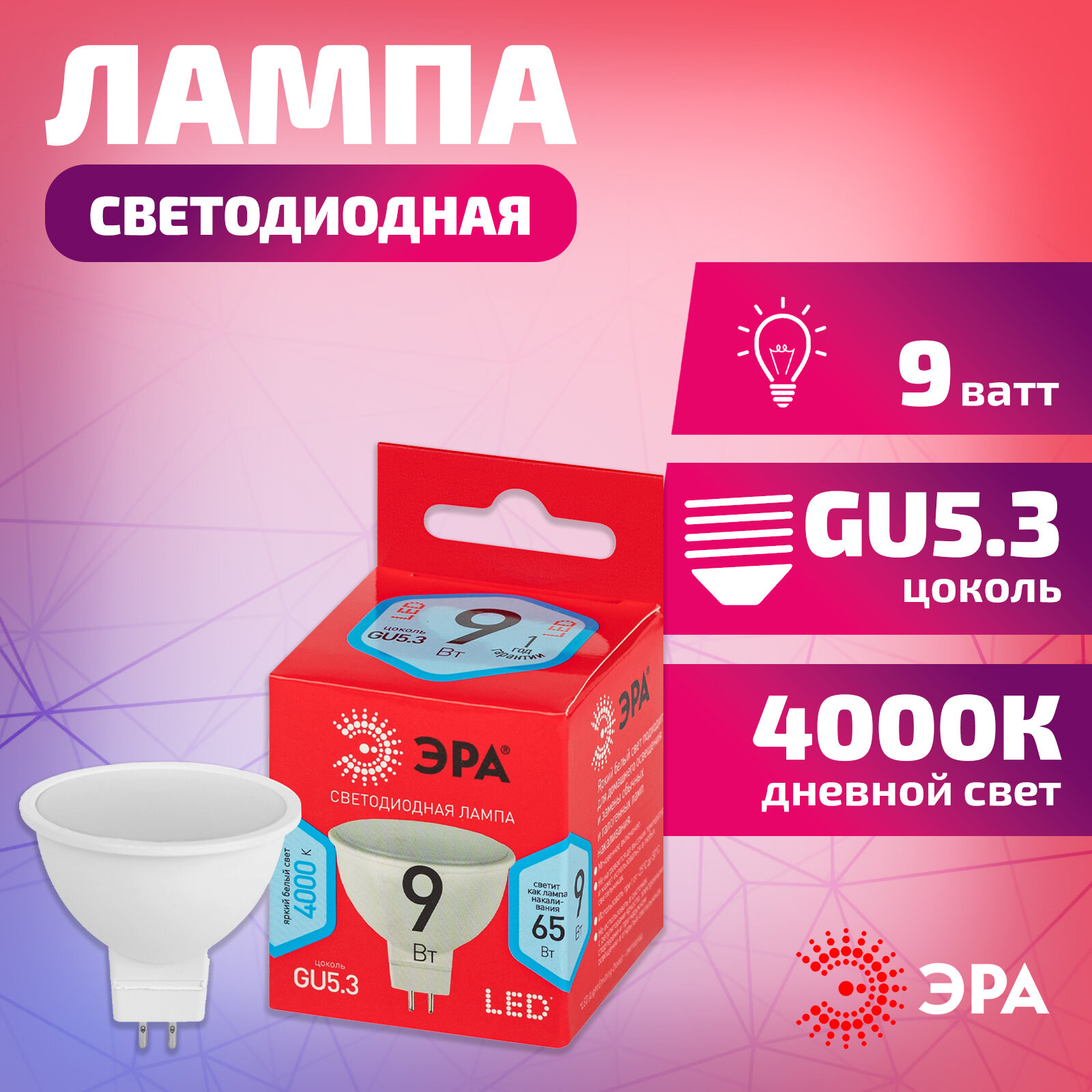 ЭРА Б0050199 Лампочка светодиодная RED LINE LED MR16-9W-840-GU5.3 R GU5.3 9 Вт софит нейтральный белый свет
