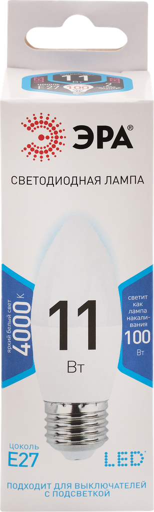 ЭРА LED B35-11W-840-E27 ЭРА (диод, свеча, 11Вт, нейтр, E27) (10/100/3500)