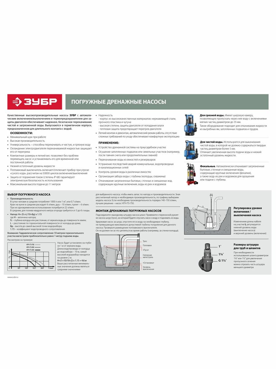 Дренажный насос Зубр НПЧ-Т3-750, дренажный