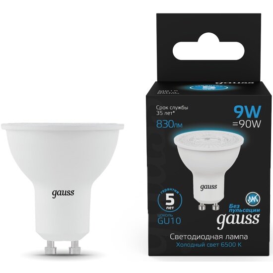 Купить Лампочка светодиодная MR16 GU10 9W холодный белый свет 6500К упаковка 10 шт. Gauss Black