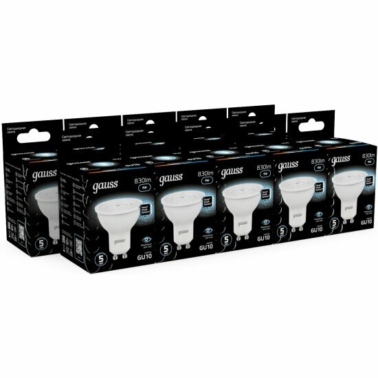 Набор из 10 штук Лампа Gauss MR16 5W 530lm 6500K GU10 LED 1/10/100