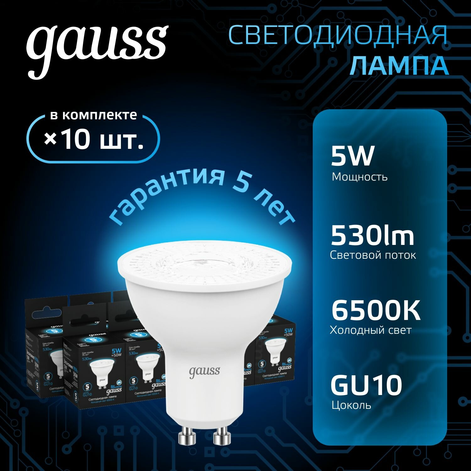 Купить Набор из 10 штук Лампа Gauss MR16 5W 530lm 6500K GU10 LED 1/10/100