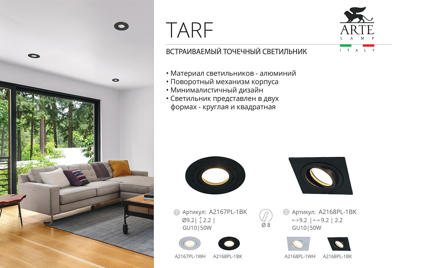Ниже Вы можете прочитать отзывы на Точечный встраиваемый светильник Arte Lamp TARF A2168PL-1WH GU10 белый, ознакомится с подробными характеристиками, посмотреть интересные обзоры и фотографии на Точечный встраиваемый светильник Arte Lamp TARF A2168PL-1WH GU10 белый.