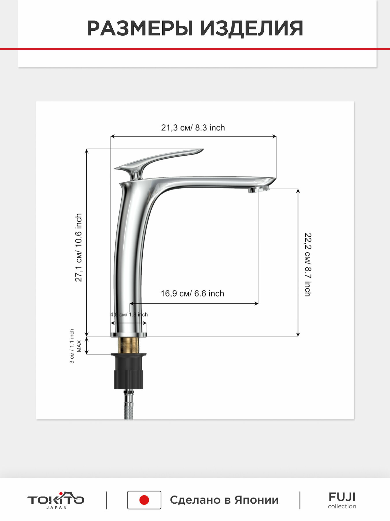 Смеситель для раковины TOKITO FUJI 27х4х21 см