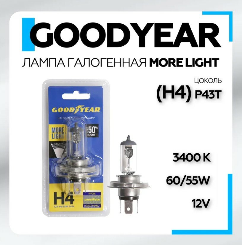 Лампа Галоген 12v H4 60/55w P43t Goodyear More Light Gy014124 GOODYEAR арт. GY014124