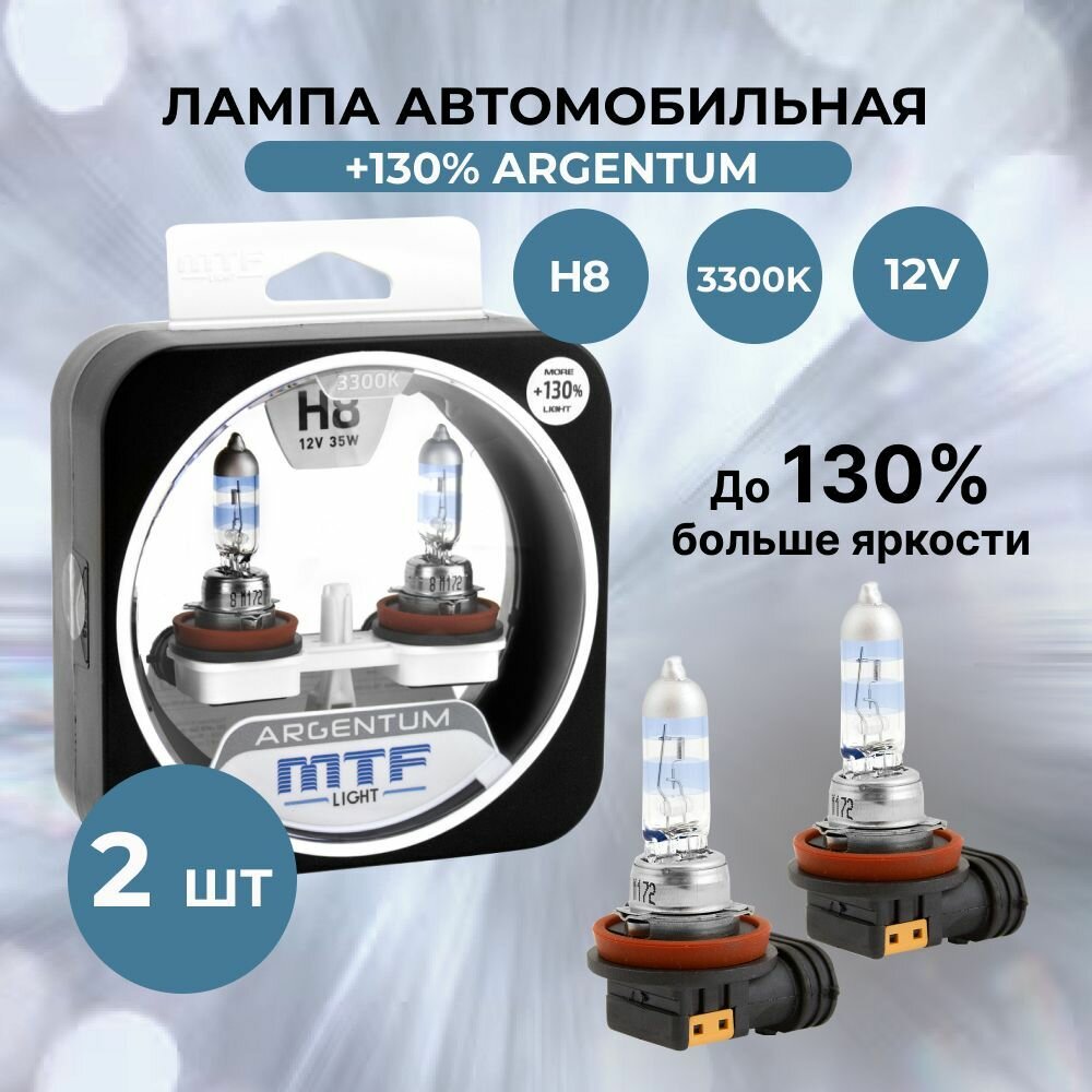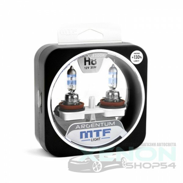 Галогенные автолампы MTF Light серия ARGENTUM +130% H8, 12V, 35W, комплект 2 лампы