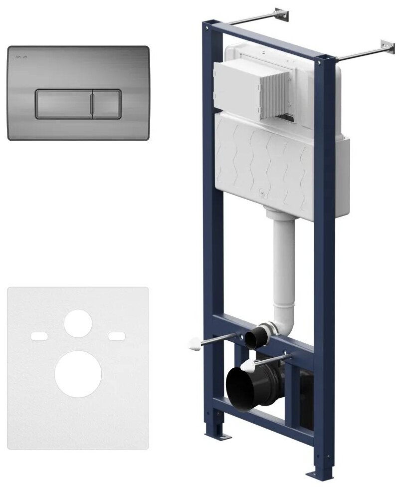 Инсталляция с подвесным унитазом AM.PM Like сиденье микролифт, шумоизоляиця, пневм. кнопка , матовый никель