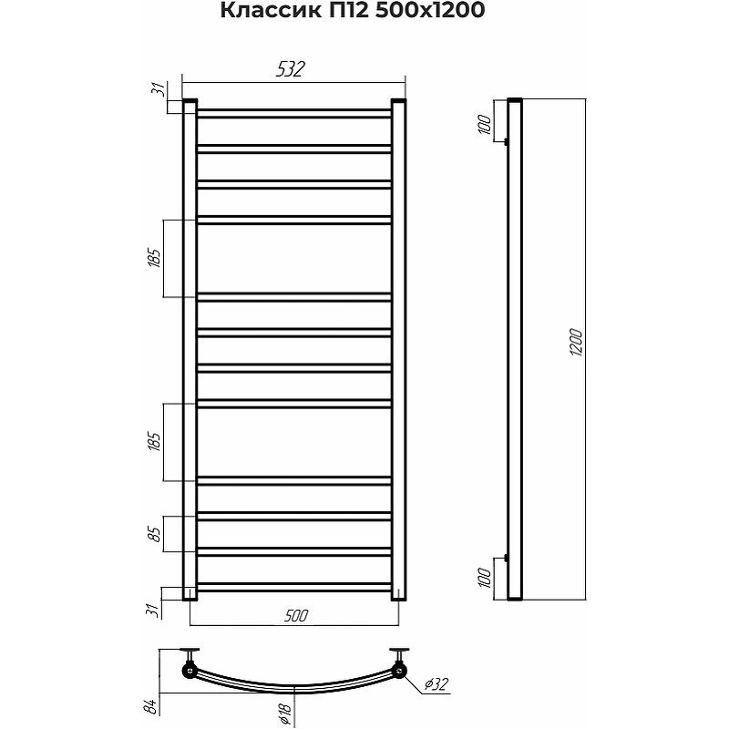Полотенцесушитель Классик П8 500х800 боковое подключение