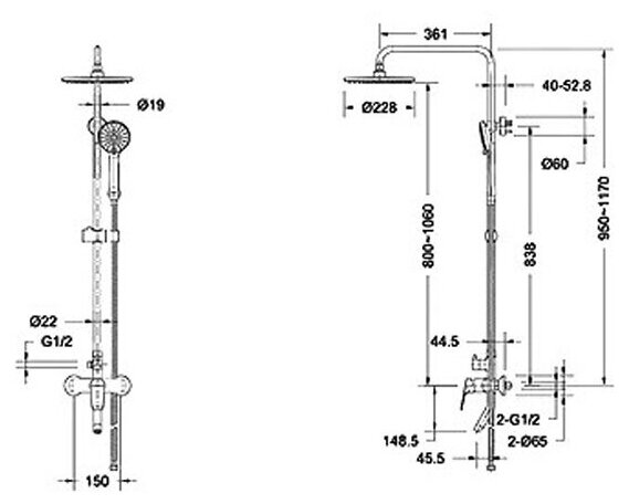 | Форма бокового душа | круглая |