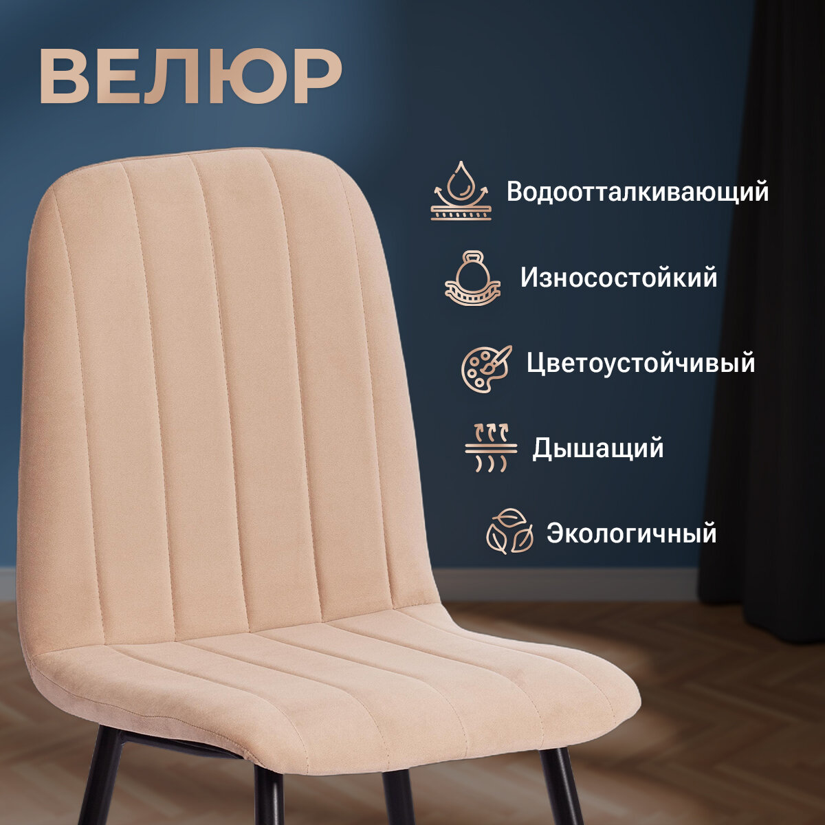 Стул обеденный ARC бежевый велюр, ножки металл черный, T-19938