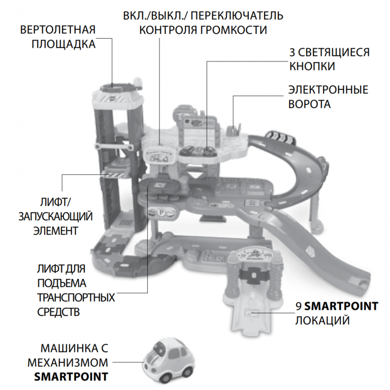 | Особенности | машинки в комплекте / с лифтом / питание от батареек |