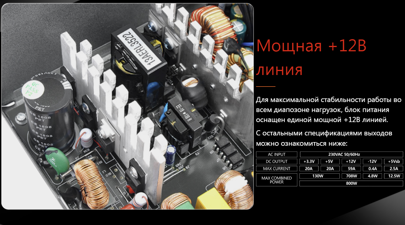 Блок питания Ginzzu PC800 ATX,14cm fan, 20+4pin, CPU (4+4), 7*SATA, 4*IDE , PCI-E (2х6+2), черный интересное: