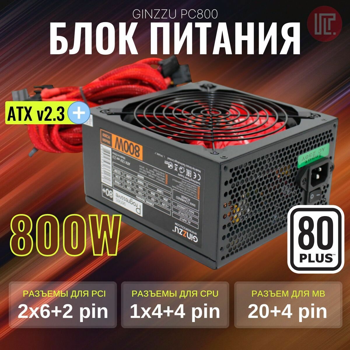 Блок питания 800 Вт ATX Ginzzu PC800, 140 мм, 80 Plus интересное: