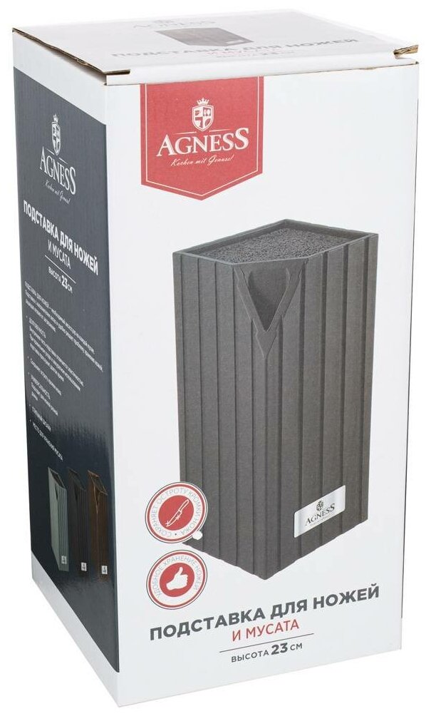 Подставка для ножей agness для ножей и мусата, 12x12x23 см 911-691