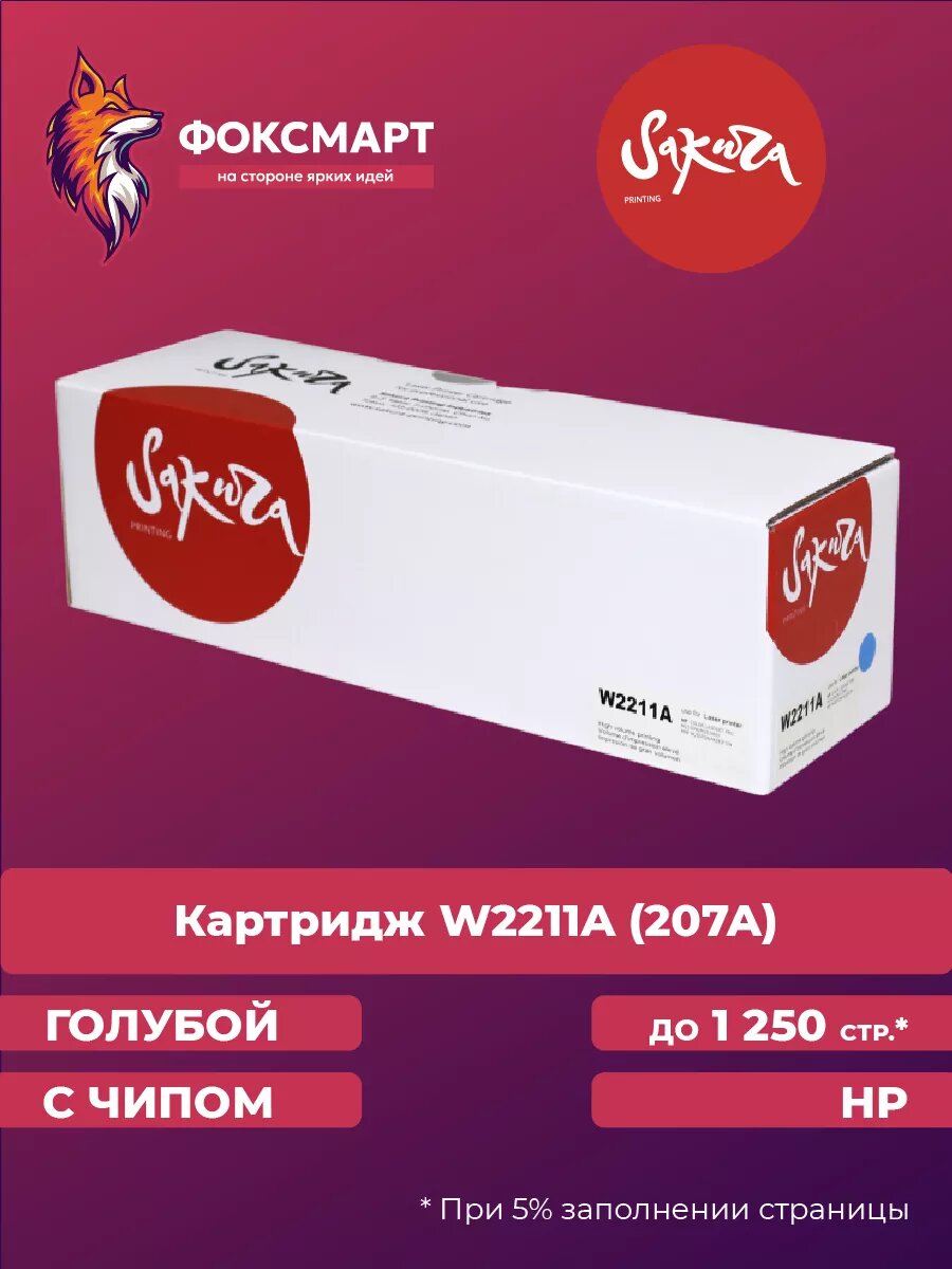 Картридж SAKURA W2211X (207X) голубой для HP LaserJet Pro M255/MFP M282/MFP M283 совместимый (2.45K) (SAW2211X)