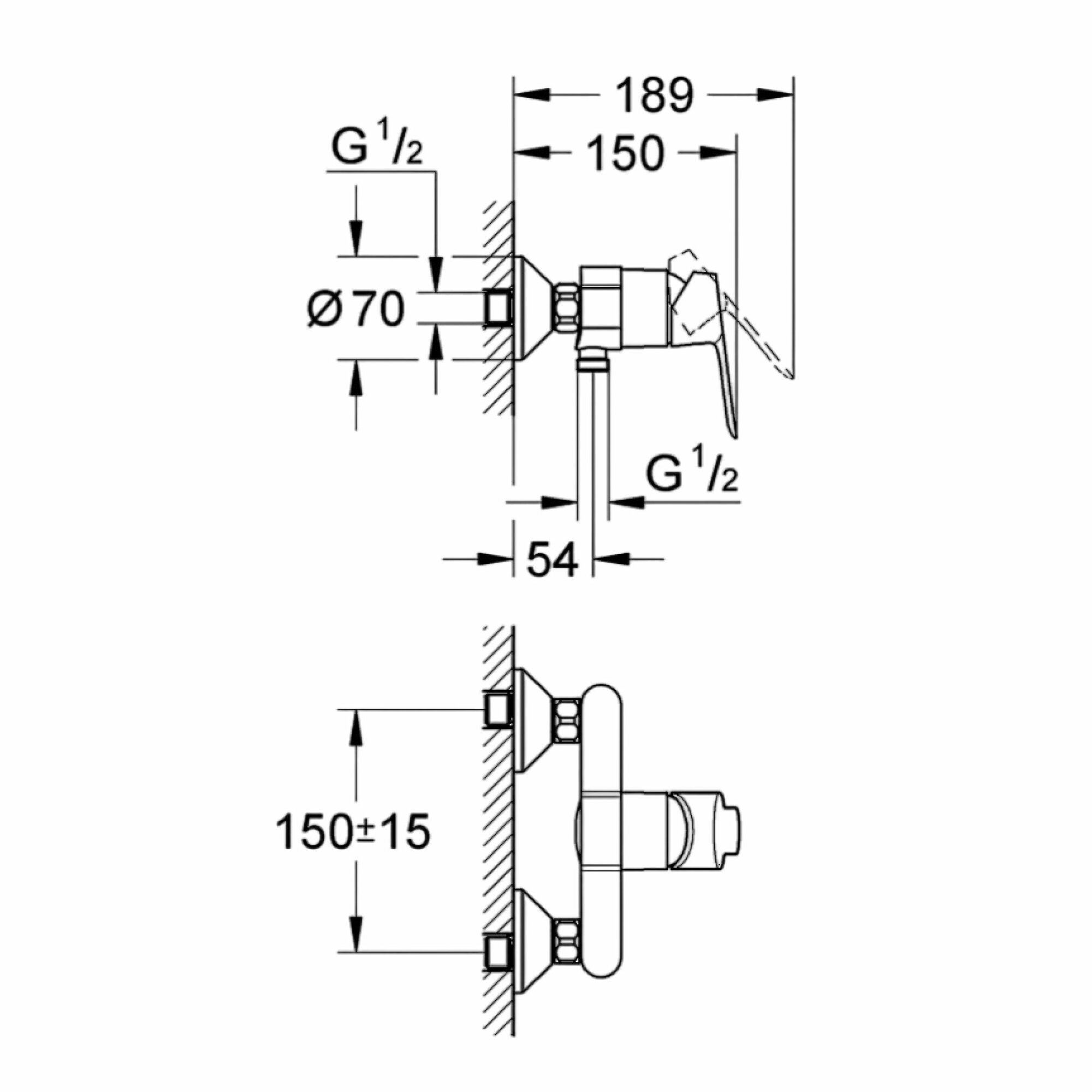 Смеситель Grohe BauEdge 23333000 для душа, однорычажный, настенный