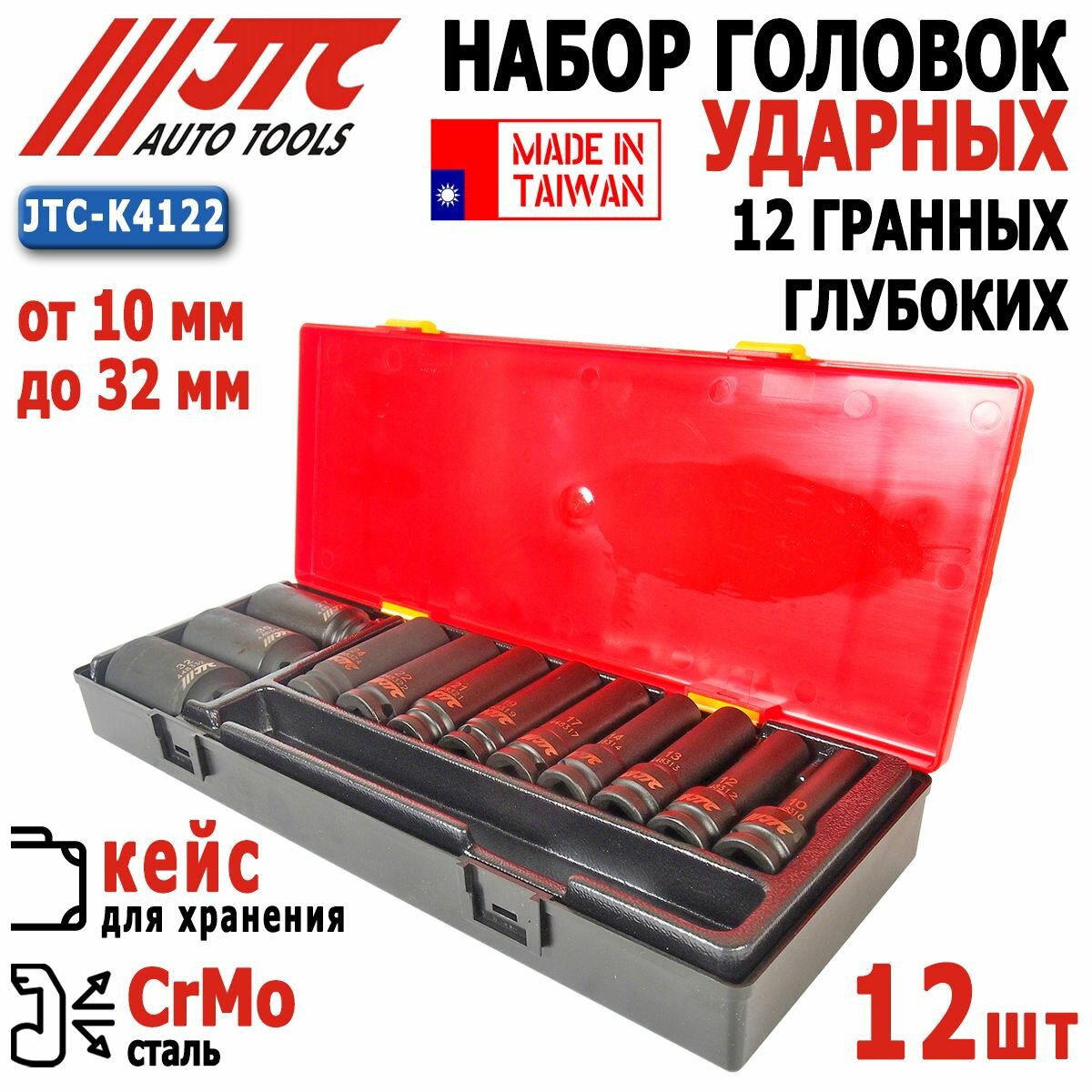 JTC-K4122 JTC Набор головок торцевых 1/2" 12-ти гранных 10-32мм глубоких ударных, в кейсе, 12 предметов
