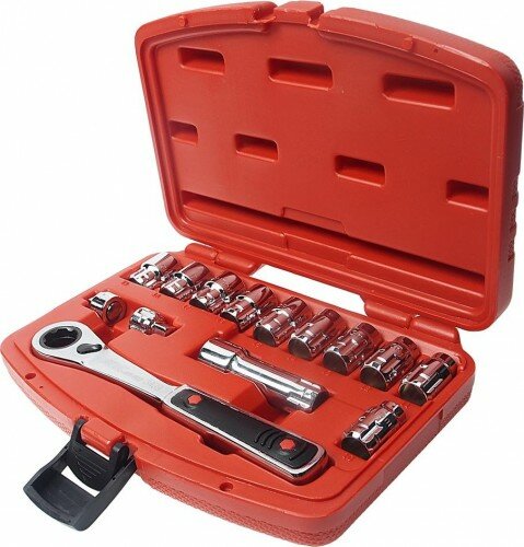 | Головки торцевые подробно | 1/4": 10, 11, 12, 13, 14, 15, 16, 17, 18, 19 мм; трещотка 1/4": 72 зуба |