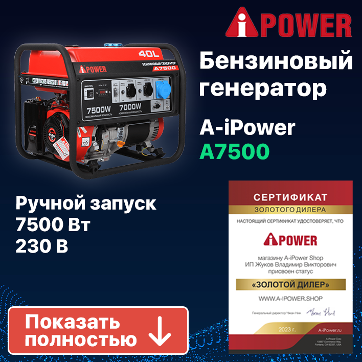 Бензиновый генератор A-iPower A7500 (1 фазная с ручным стартером)