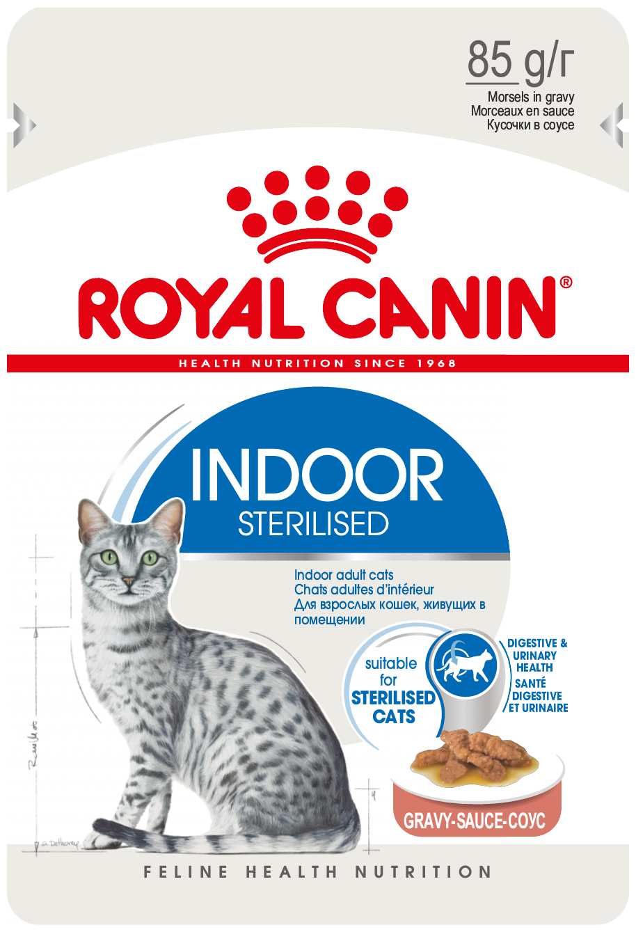 Корм влажный Роял канин для Стерилизованных домашних кошек Indoor sterilised пауч в соусе 6 шт по 85 г