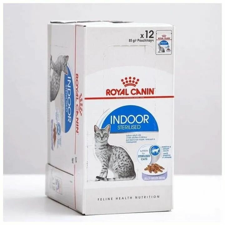 Влажный корм для постоянно живущих в помещении стерилизованных кошек и котов Royal Canin Indoor Sterilised 85гр.×12шт. (кусочки в соусе)