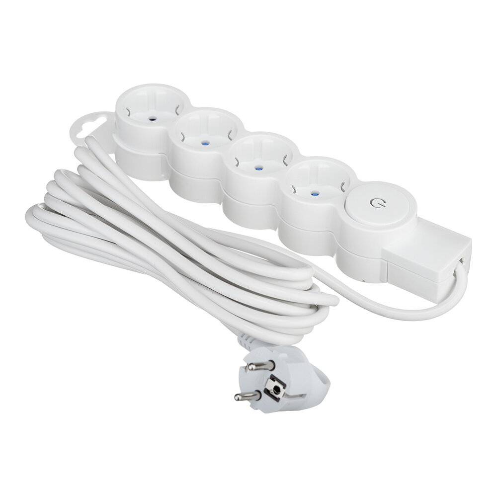 Удлинитель Düwi 4 розетки 5 м ПВС 3х0,75 кв.мм 10 А 2,2 кВт с кнопкой белый (32015 1)