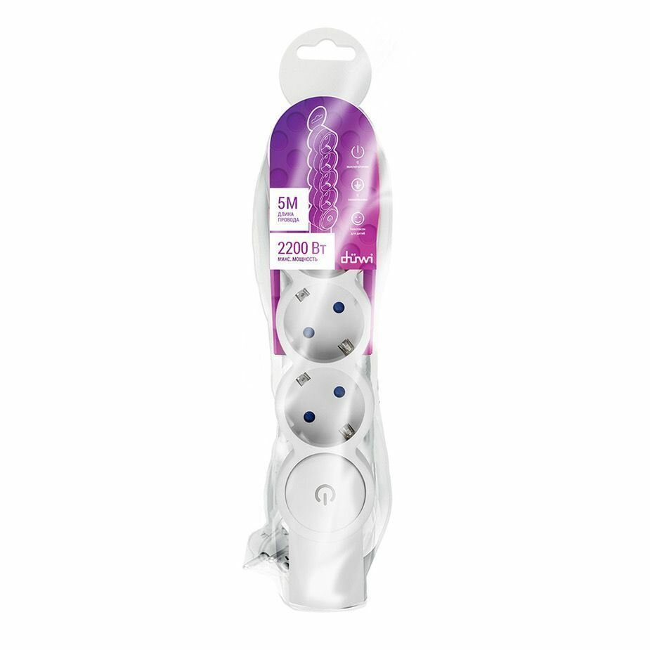 duwi Удлинитель Duwi, 4 розетки, 5 м, 10 А, 2200 Вт, ПВС 3х0.75 мм2, с з/к, с выкл., со шторками