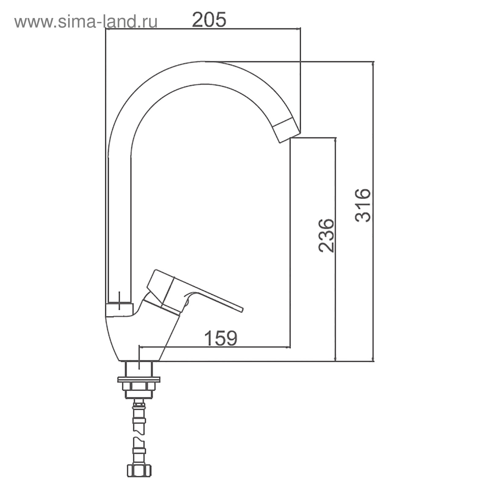 | Длина излива | 159 мм |